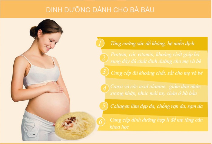 Đặc biệt tế bào chứa hơn 50% protein và các vi chất đóng vai trò quan trọng trong việc sản xuất sữa mẹ. Bên cạnh đó, yến sào giúp mẹ bầu ngủ ngon, giảm sự mệt mỏi, khó chịu do thay đổi nội tiết tố khi mang thai. Chất Collagen trong yến sào giúp chống rạn da và làm cho da mặt sáng mịn và hồng hào.